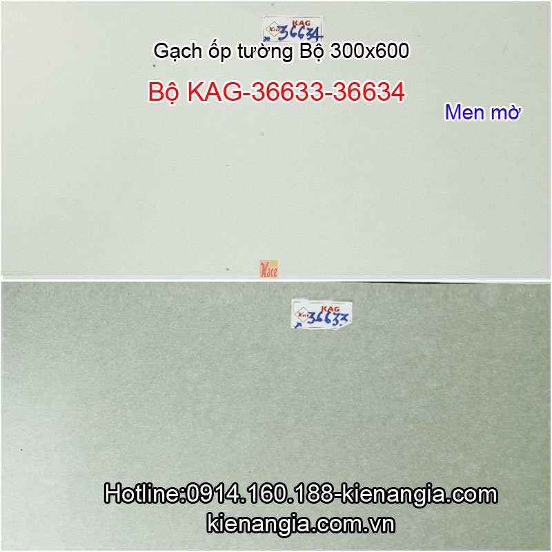 Gạch men mờ ốp tường resort 30x60 Bộ KAG-36633-36634-Z2556,ốp tường phòng khách,phòng tắm,phòng ngủ,phòng sinh hoạt chung nhà phố,khách sạn,căn hộ,nhà cho thuê,quán ăn,phòng karaoke...đều đẹp.Đơn giản,sạch sẽ,sang trọng ,giá rẻ KIẾN AN GIA-0914.160.488 kết hợp cùng combo TBVS Inax,Caesar,Thiên Thanh,Viglacera chính hãng chiết khấu cao trọn bộ.​Giá ghi tại đây là giá tính trên m2 của gạch ốp tường màu đậm/ màu nhạt/ gạch không viền .Giá gạch điểm tính trên viên.​Gõ (search) mã sản phẩm vào ô tìm kiếm trên website để biết giá từng sản phẩm.