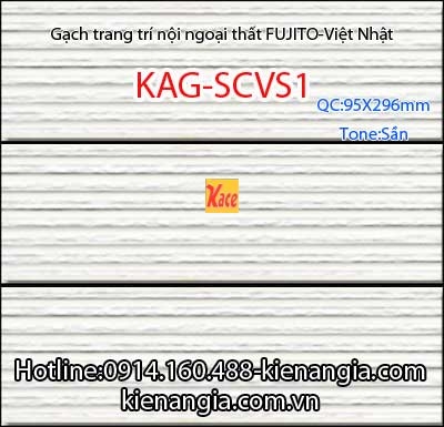 Gạch ngoại thất cao cấp FUJITO KAG-SCVS1 công nghệ Nhật Bản sản xuất tại Việt Nam nên giá thành rẻ mua ngay tại KIẾN AN GIA.Gạch trang trí ốp Gạch ngoại thất cao cấp FUJITO KAG-SCVS1 tường ngoại thất,nội thất bề mặt sần qui cách nhỏ 95x296 nên dễ thi công cho nhiều vị trí công trình gia đình,công cộng hay biệt thự,resort....Nhiều mẫu tại 0914.160.488