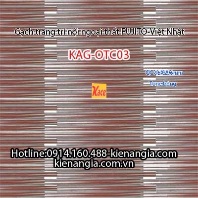 Gạch ngoại thất,nội thất trang trí Fujito KAG-OTC03 qui cách 95x296mm công nghệ Nhật Bản,giá rẻ KIẾN AN GIA dùng ốp tường trang trí nội thất như tạo điểm nhấn phòng khách,tam cấp,ô treo ti vi hay trang trí ngoại thất mặt dựng các tầng,mặt tiền,cổng,cột....rất đẹp.Qui cách gạch nhỏ nên dệ tạo hình trang trí,nhiều mẫu tại 0914.160.488